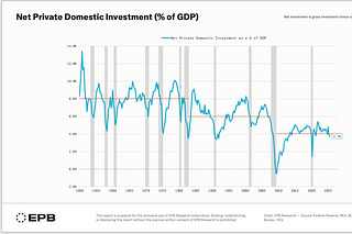 Net private investment has fallen from over 8% to under 4% of GDP over the past several decades. The economy is increasingly just replacing worn-out…