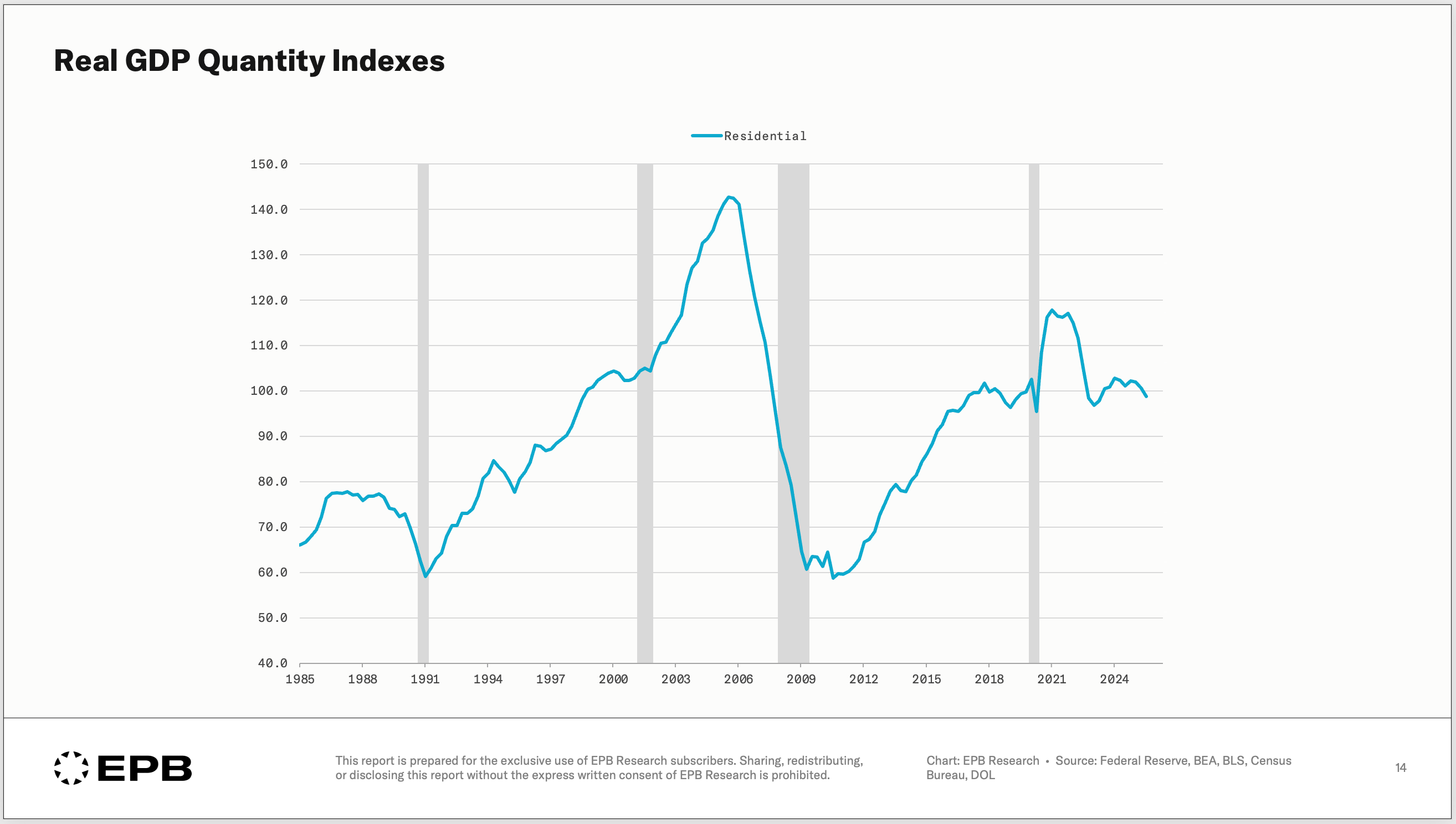 These components, residential investment, business equipment investment, and durable goods consumption, are all interest rate sensitive, generally lean more discretionary, and are big-ticket items that are financed.